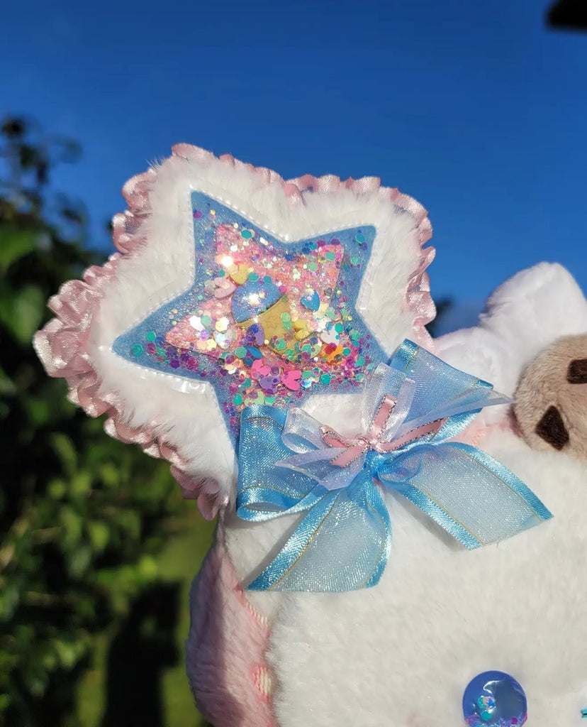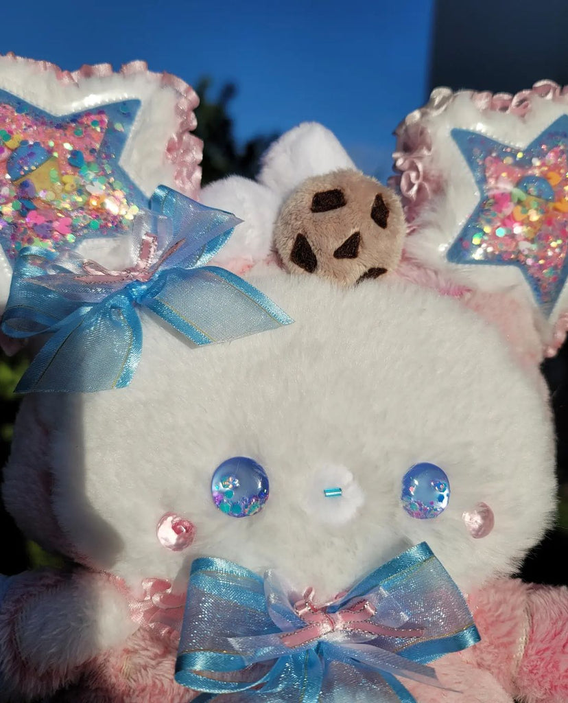 She has a cookie and marshmallows on her head! 🍪She loves sweets, specially ice creams and lollipops! ^-^🍨🍭.