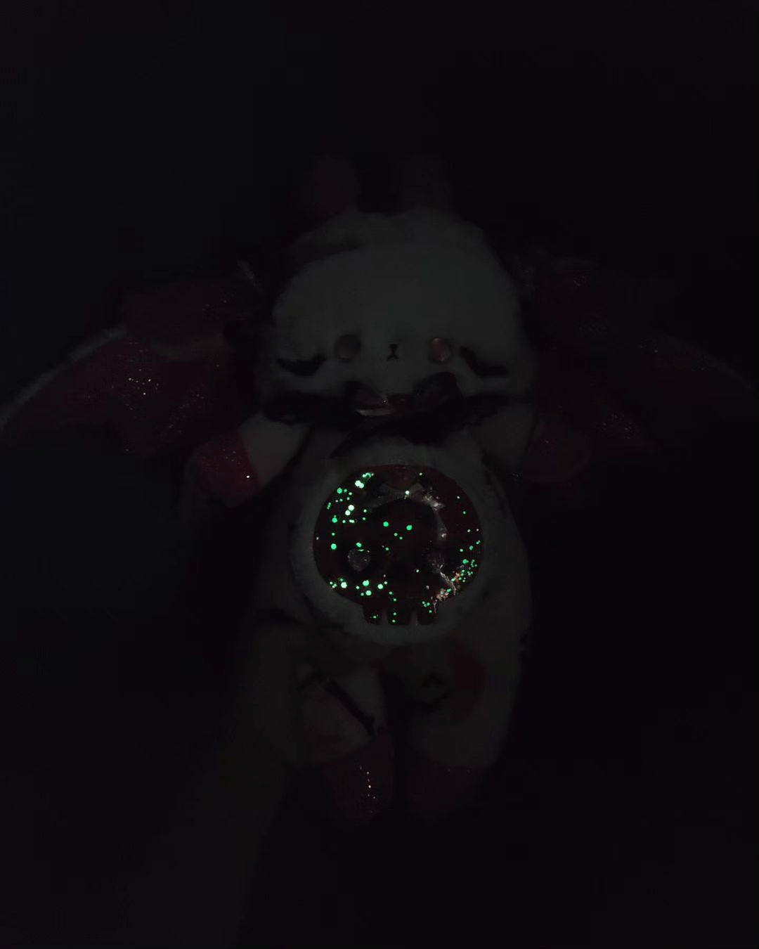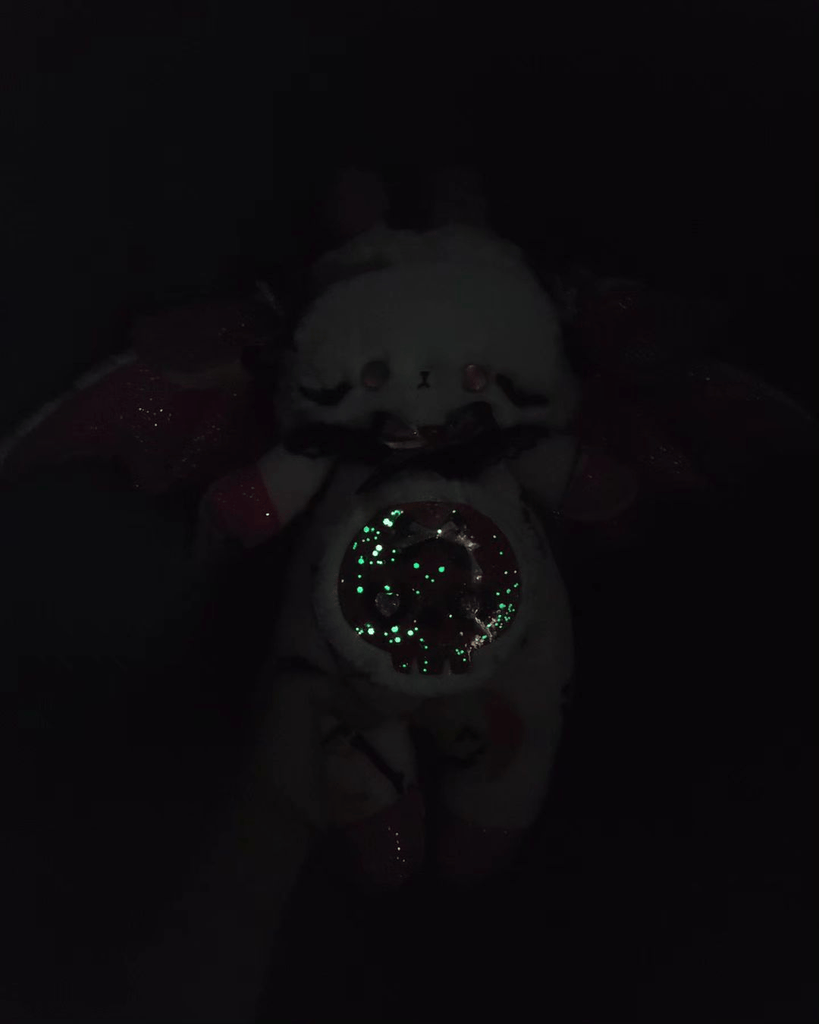 She's a Bat Cow! ^-^ She's in charge of healing the pain you can't see, the pain of your heart.. the pain of your soul. She's a very strong plushie, she will never leave you alone. 💕