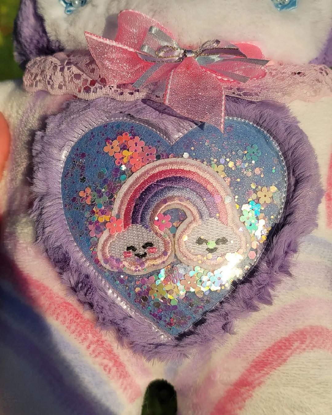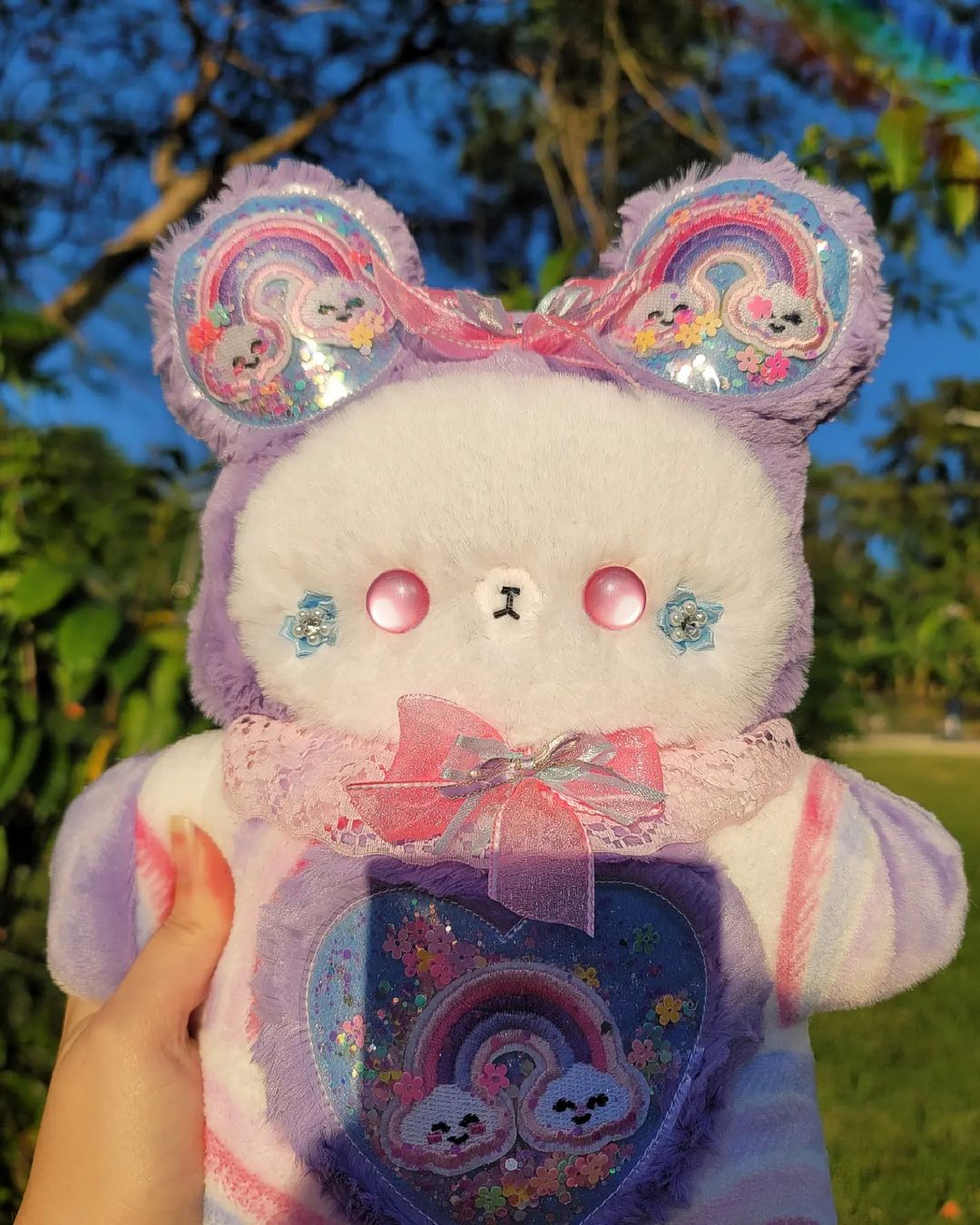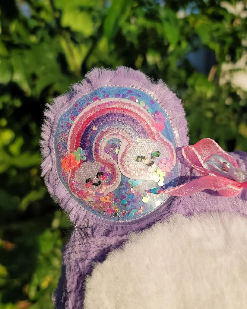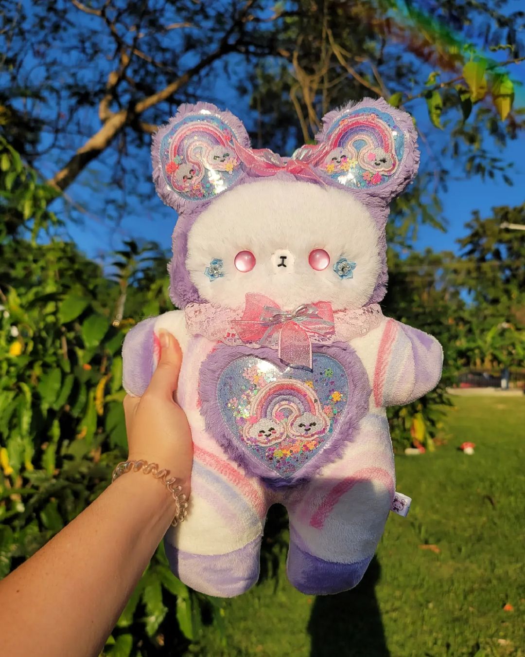 It's a lavender little bear!💜 She loves using the rainbow like a slide, leaving all her glow and glitter everywhere! She's very childish and playful, everything from her is happiness and smiles. 💕