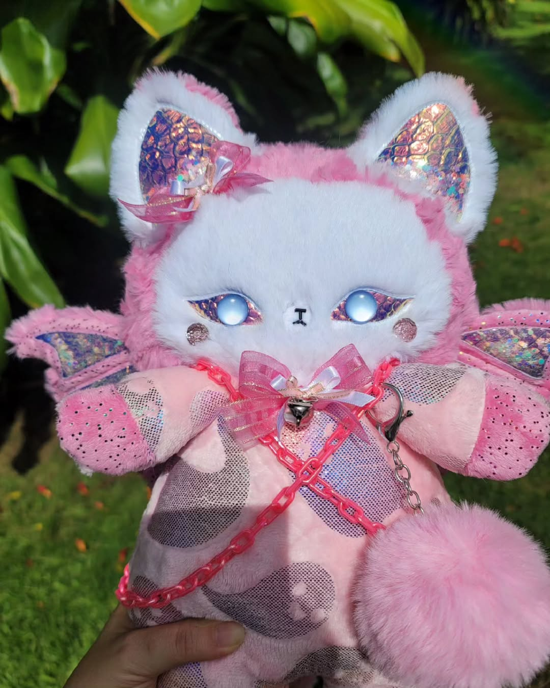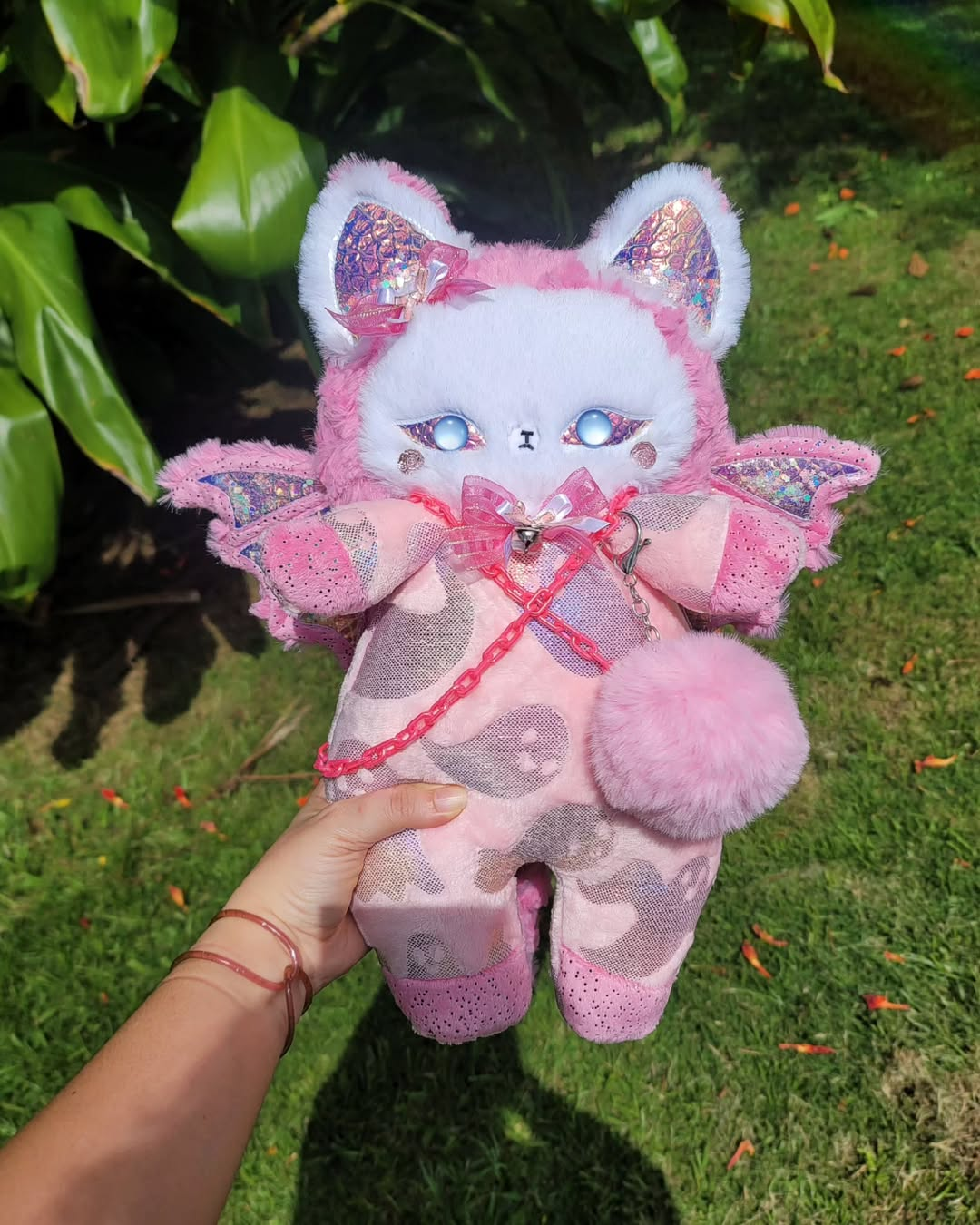 Meet this Pink Holographic Bat Kitty! ^-^💕 She has holographic details like ghosts, ears and bat wings! ^-^💕 She's a fighter, she has her own spark and don't need anything from anyone! She want it, she GOT IT! She always believes in herself and don't let anyone to put her down. Beware, she has NO fear! 💕