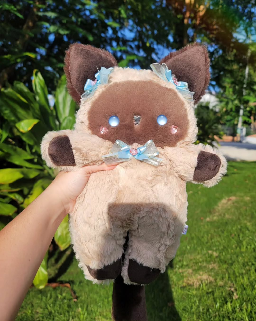 This is designed after my late cat Ruby. Ruby was a Siamese cat and loved to talk a lot and we would give her the additional nickname of squeaky because of how much she would squeak. She always followed me around and she loved cuddling.💕