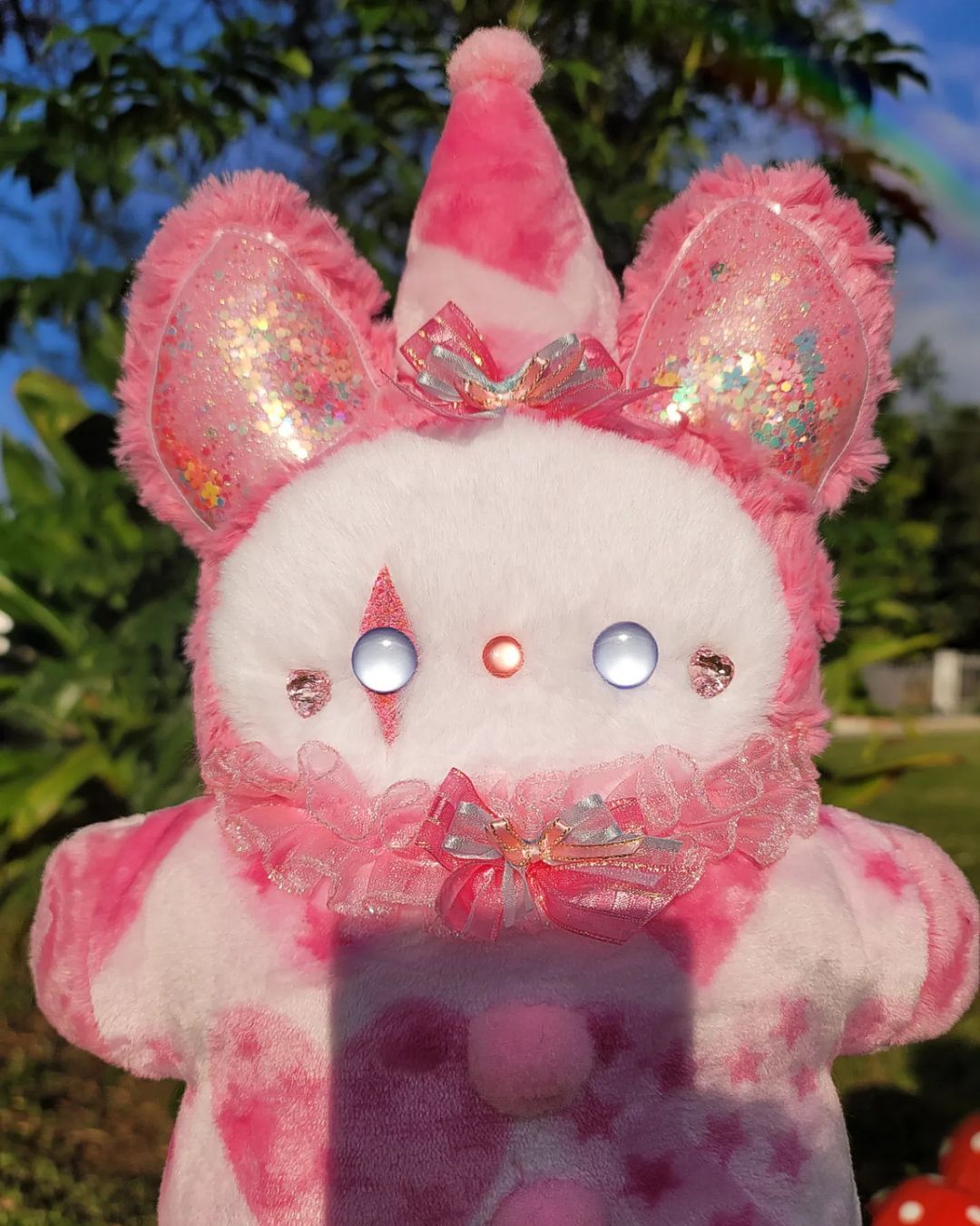 Got to me early and is about the cutest little clown bunny I’ve ever seen. It’s incredibly high quality. There’s even little clear plastic guards for the embroidery on the face, but they don’t interfere with the softness or cuddly-ness at all