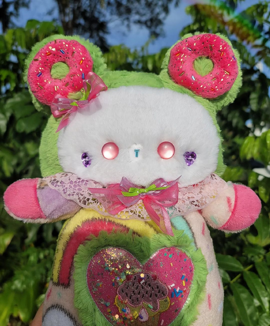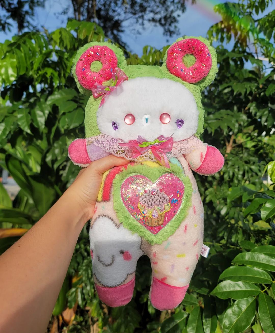 Meet this Sweet Plushie! 🧁💕 She LOVES candy! She has two donuts with sprinkles on each ear and her favorite cake on her belly! 💕 She's always smiling and giving happiness to everyone around! 🍨💕