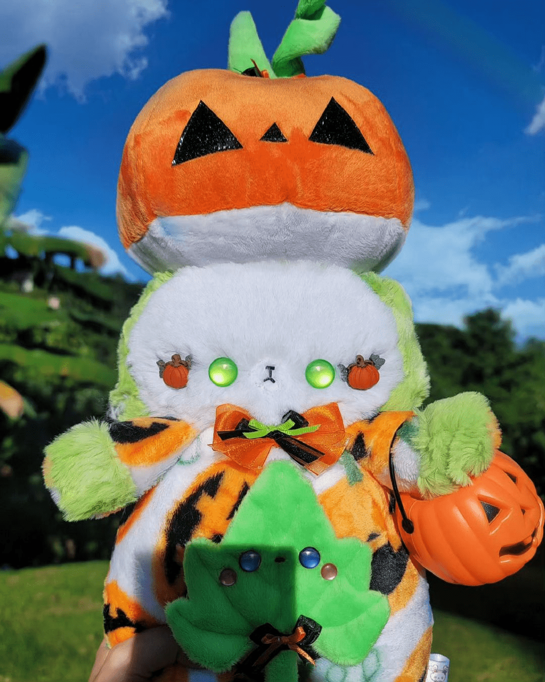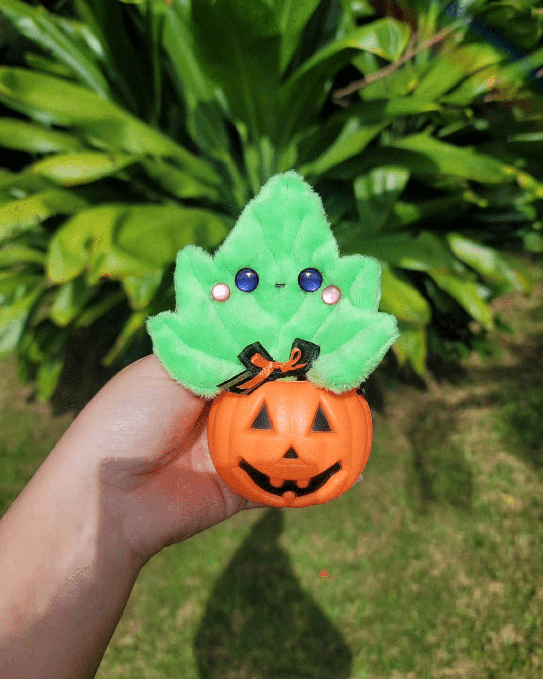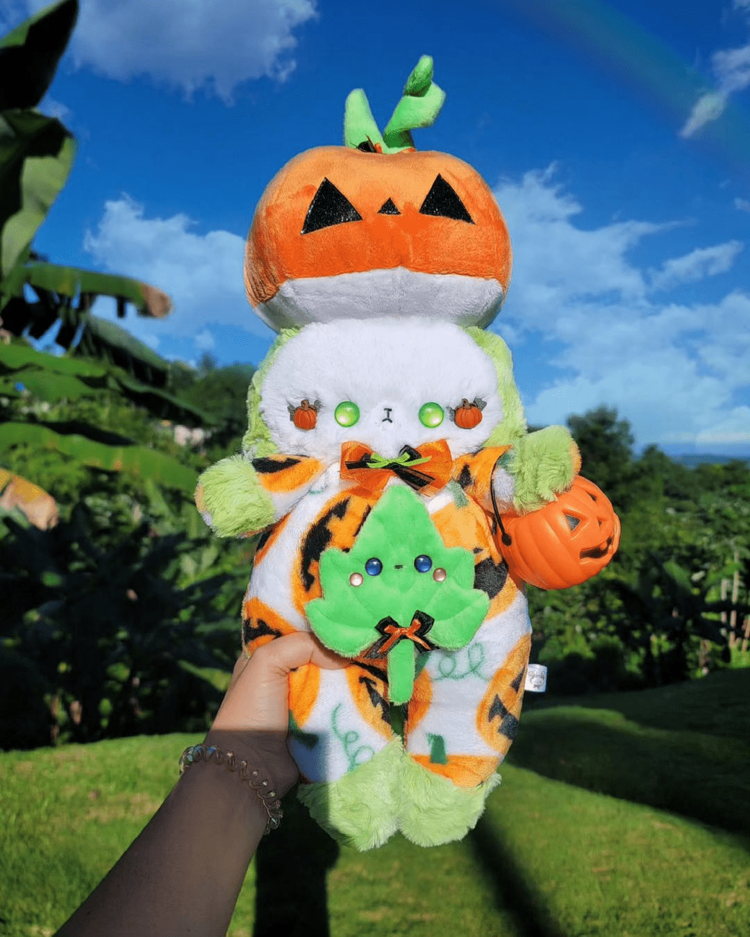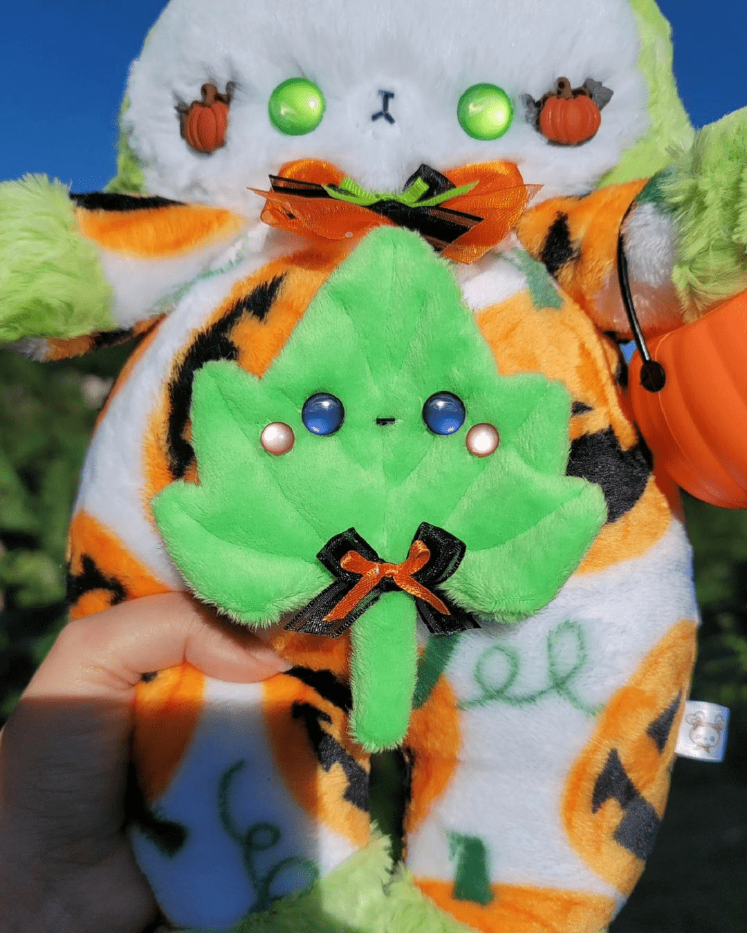 Meet this little Pumpkin Mushroom Plushie! 💚🧡 He loves taking care of others, he has special powers to cure diseases but he's never alone! He has a tiny little leaf friend that helps him create the perfect healing medicine to spread comfort, joy and happiness wherever they go! ^-^ 🍄🍃💖