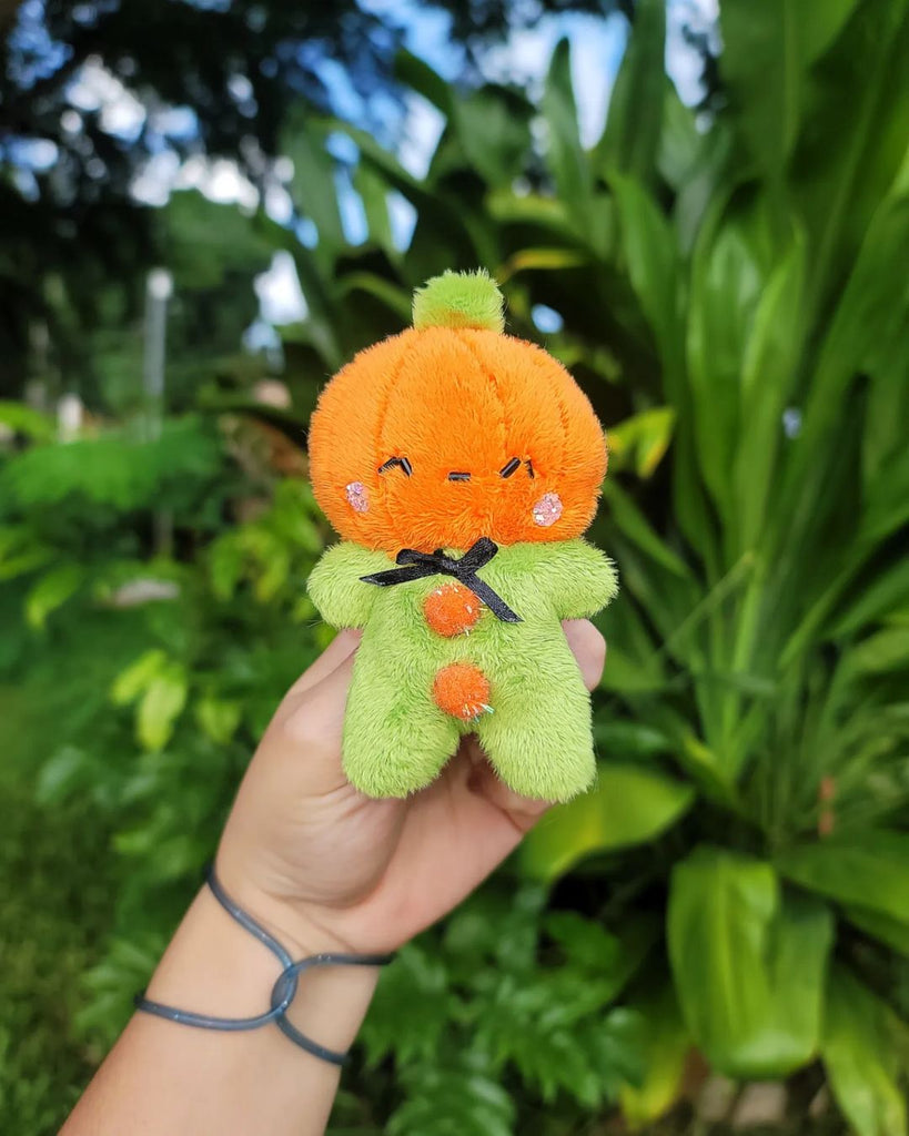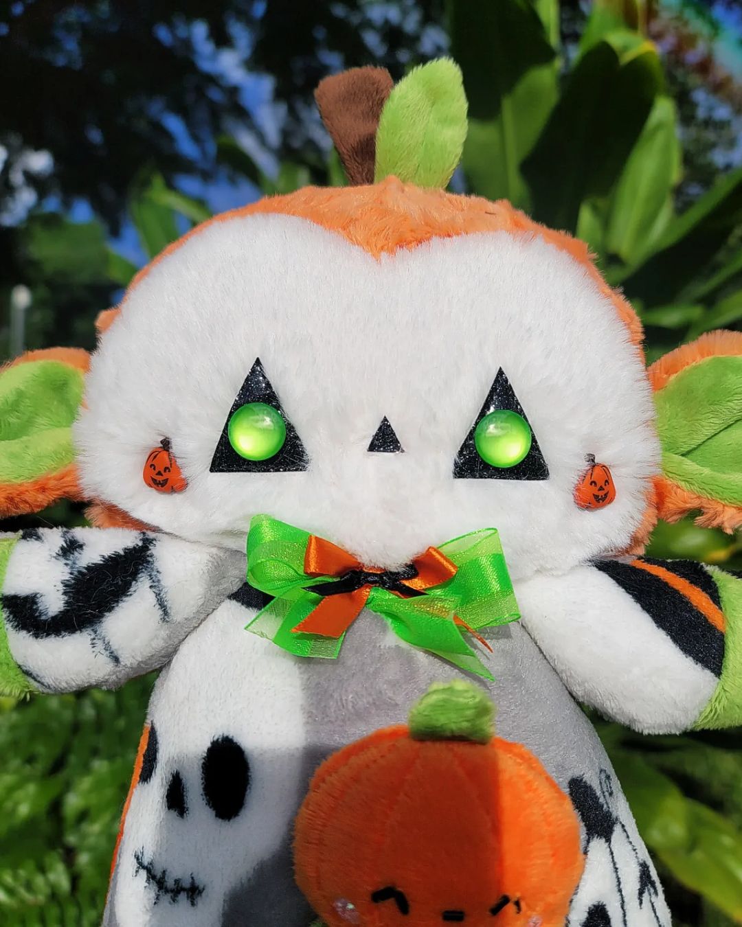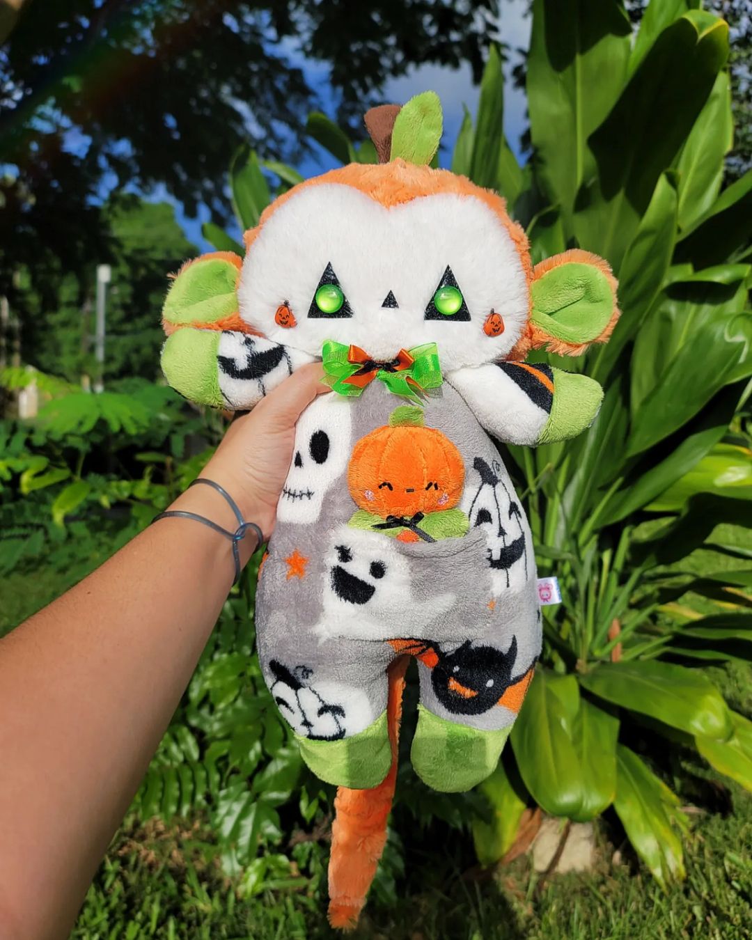 Meet Monkey Pumpkin! 🐵🎃💚 He might look a bit scary but he's a sweet little guy! He's always accompanied by his tiny little pumpkin friend! They both LOVE a pumpkin hunting day! ^-^🎃💚