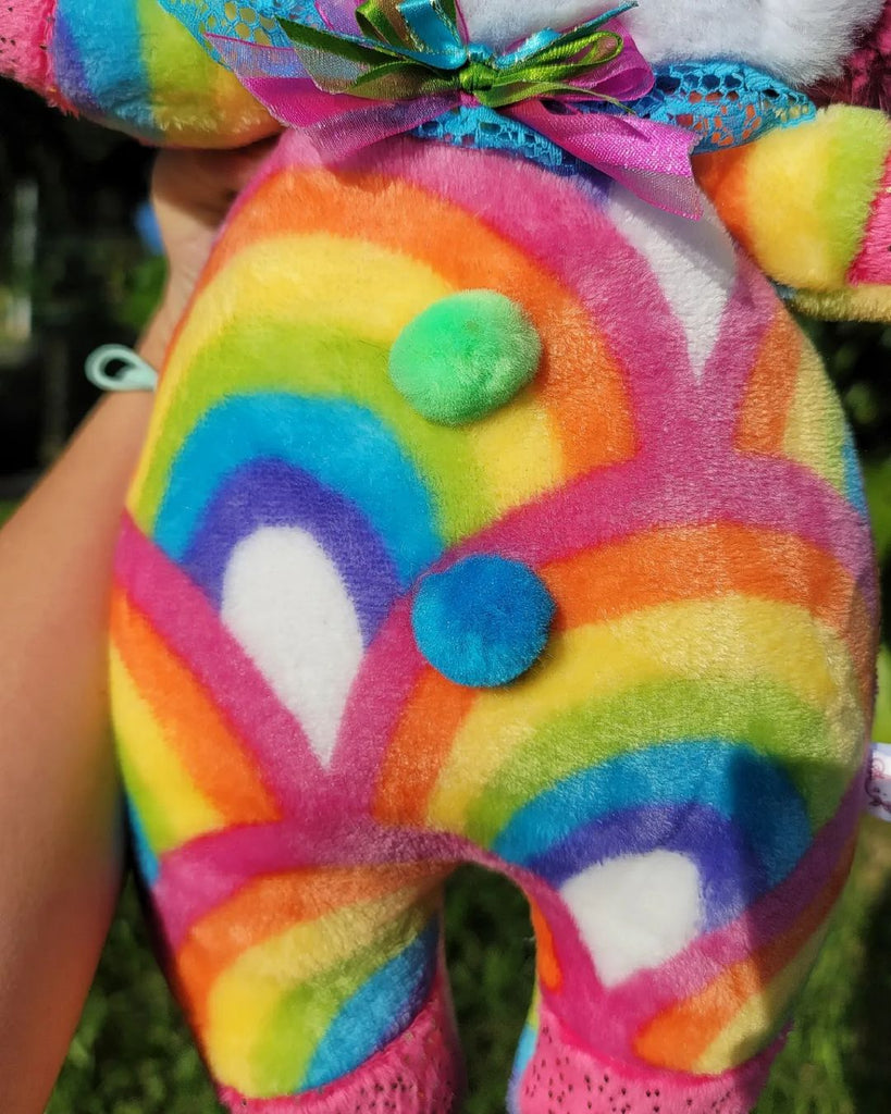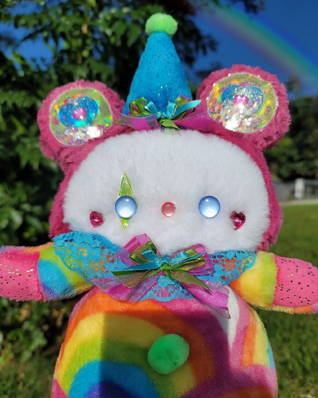 He's a beautiful rainbow clown bear! ^-^💕 His favorite hobby is to do stunts on the rainbow! 🌈 Every time there's a rainbow, he will always be making magic and sparkles on it! ^-^💕
